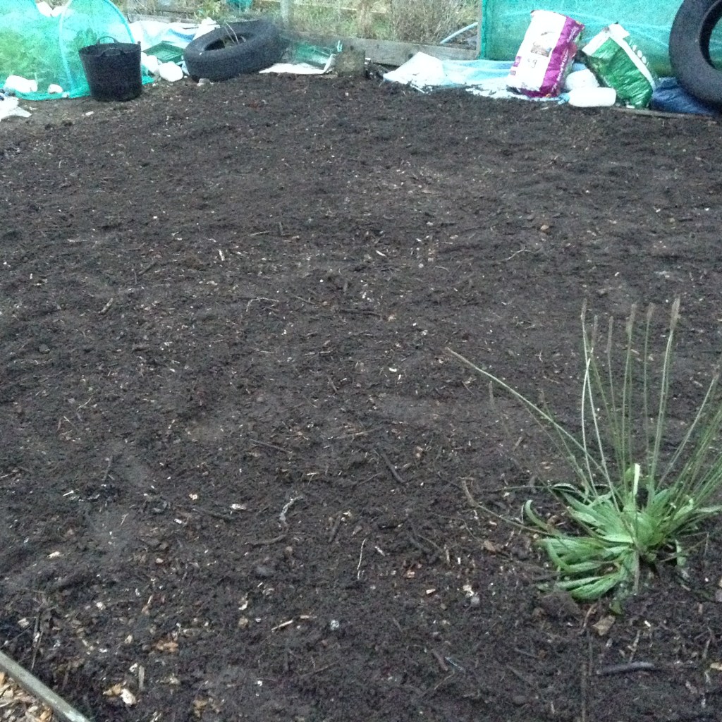 Bit more weeding – which was a lot easier than I thought it would be, even the docks came out without too much of a fight. For the final touch, we spread home-made compost over the entire bay: