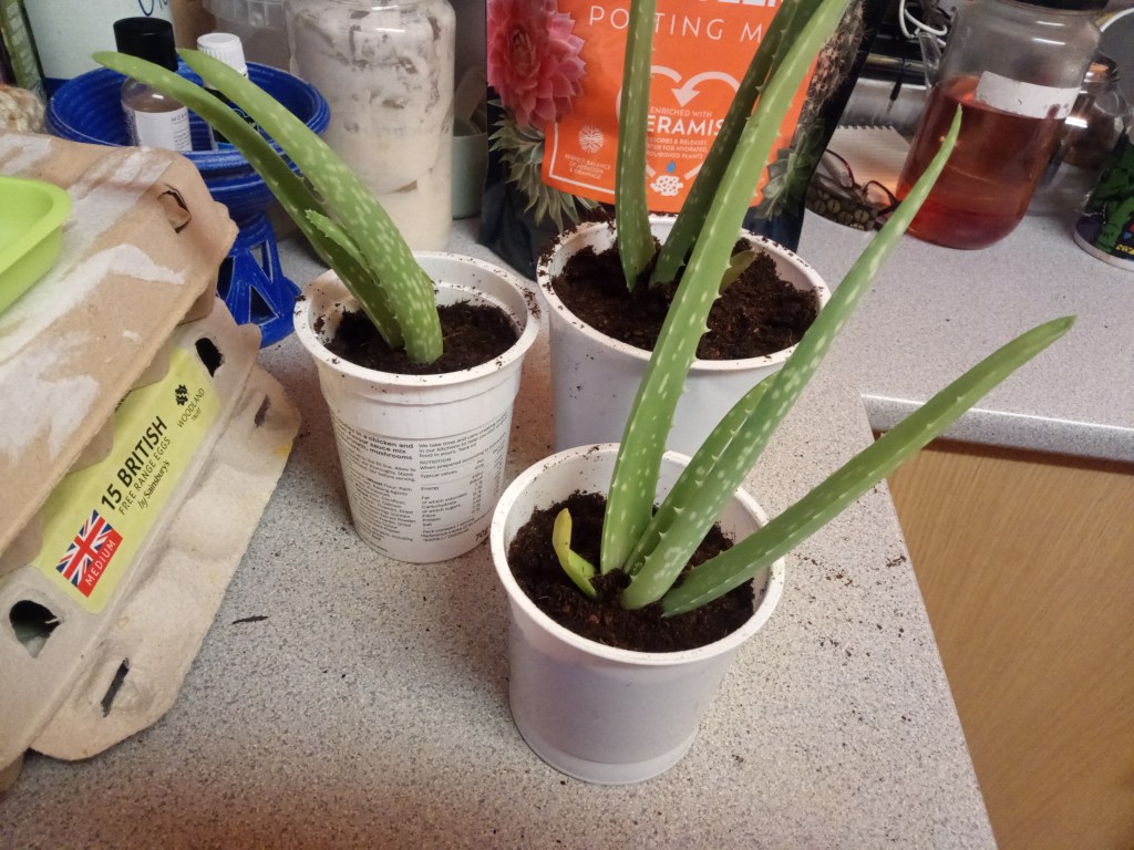 I noticed some baby aloe vera plants (pups) growing from my big mama plant and I left them for quite a long time. However, they got so big I decided to remove them the other day and grow them on.