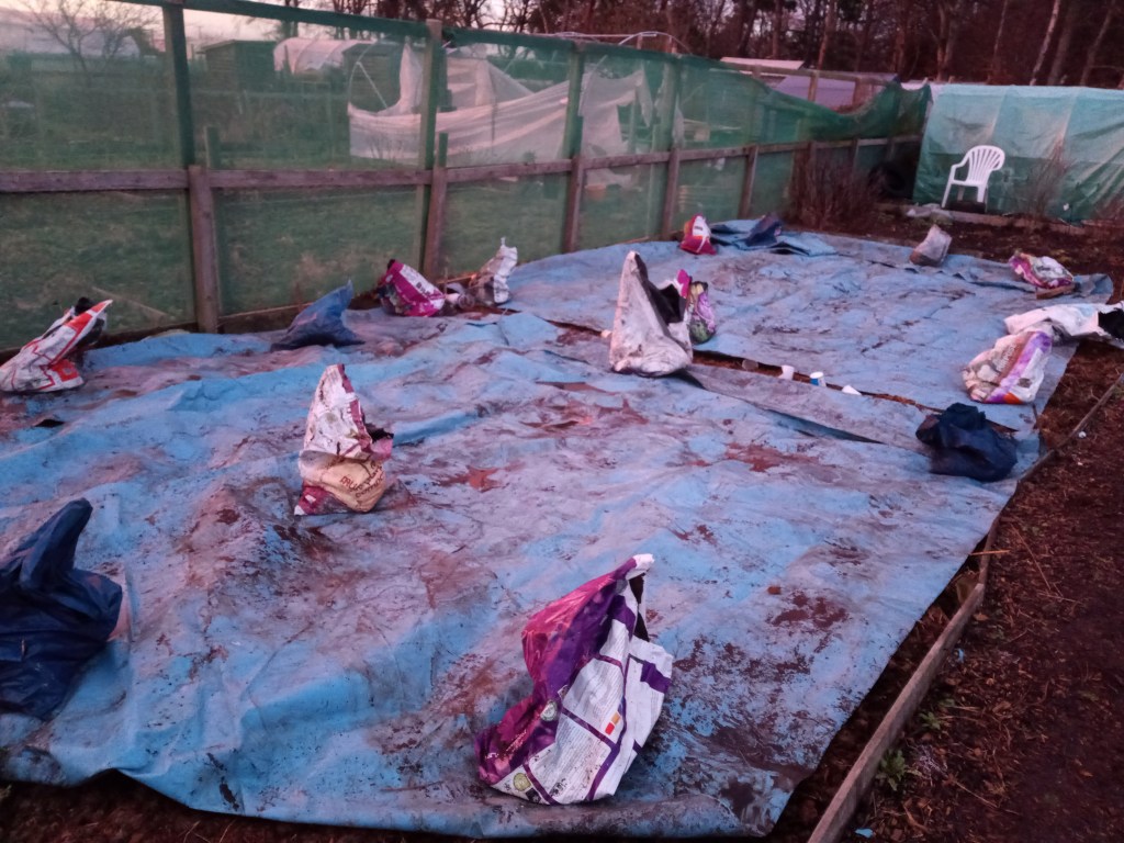 If you’ve been keeping track you will know we got 2 of the larger bays covered in manure and today I finally got the blue covers in place. I know black would be better for the weed suppression but blue is what I have and at least it will stop further rain/ice getting in.
