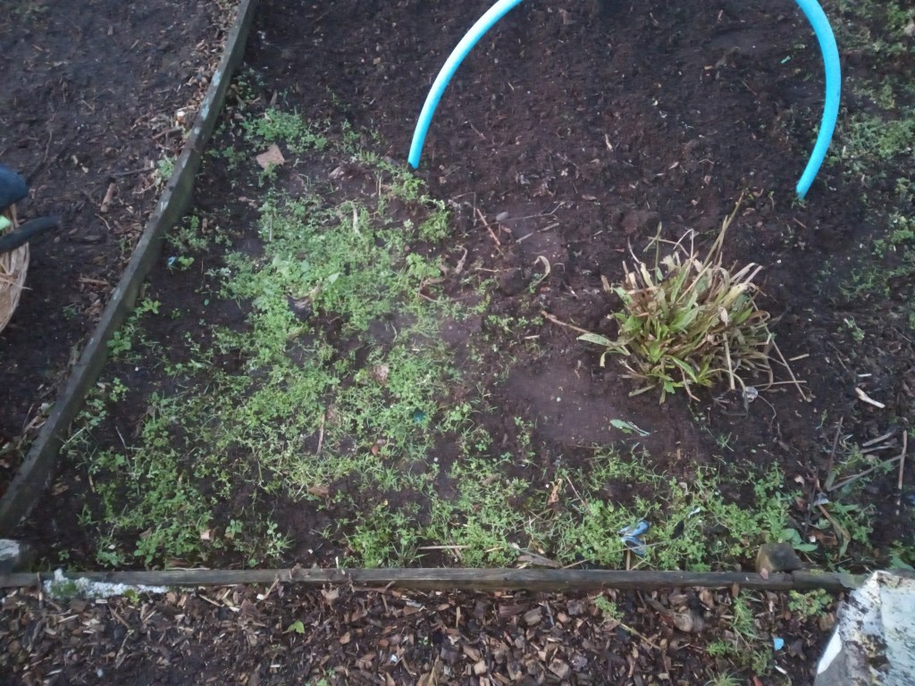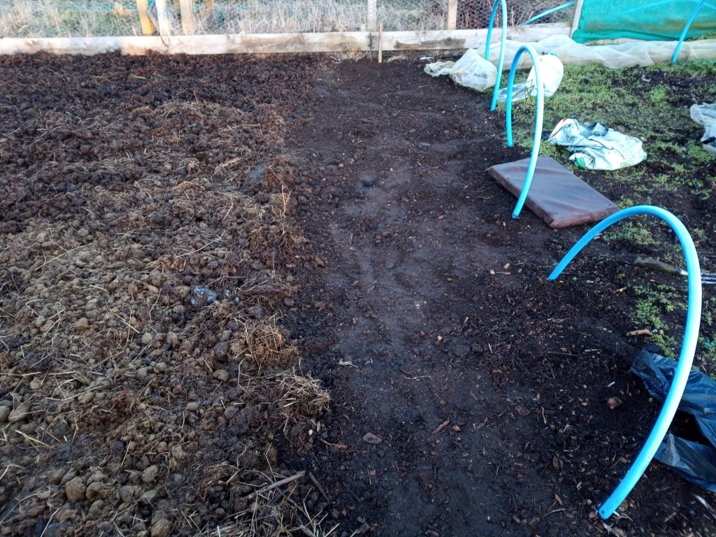 That last bit only got a little compost because there are some asparagus plants in there somewhere – we’ve lost them. When (if) they grow I’ll be adding a line of woodchip as a little boundary ‘wall’.