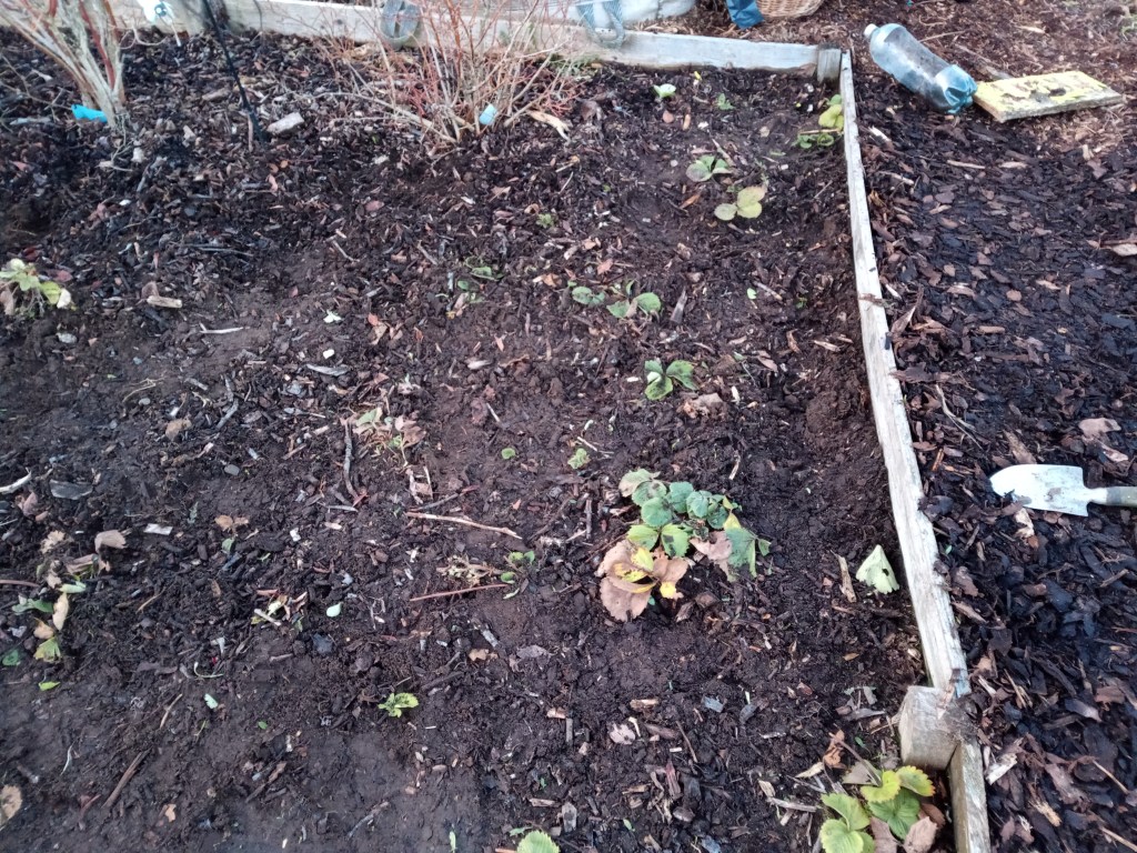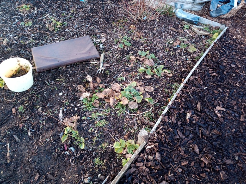 Well, despite the cold, we went up again today and managed to FINALLY get the last little bit of the main strawberry patch cleared. Then we even managed to get a few barrow loads of home-made compost onto it which I spread all around. I can’t tell you how happy I am to finally get that job complete.