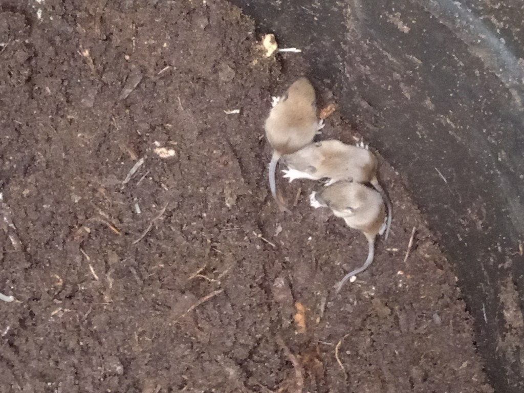 The 3 in the pictures are the ones which stayed out of the nest, the others went back in! I know some of you will be thinking I should have ‘disposed’ of them but I didn’t have the heart – their eyes were still closed. If I tell the committee they will be in with their poisons and I don’t want that either.