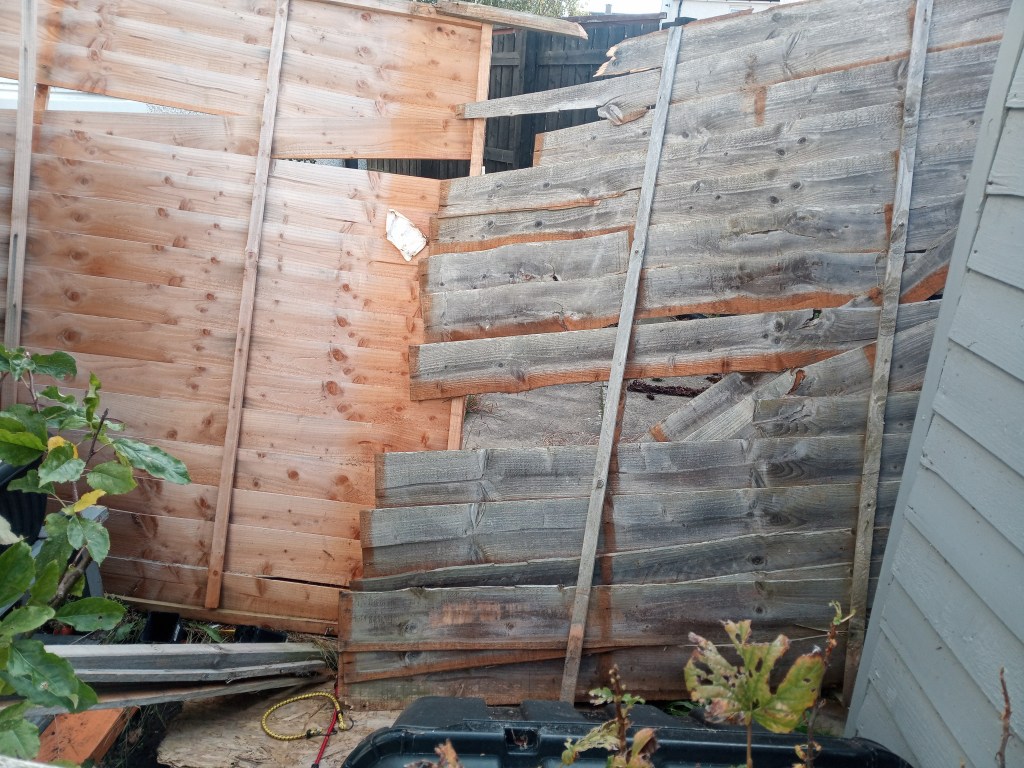 A couple of storms ago, the middle panel came down, but the new one just about did too. After many – and I mean MANY – calls, emails etc, I managed to get hold of a type of handyman scheme who sent someone out to have a look. He managed to temporarily secure the wobbly new panel and removed some rubbish for me. He said if I supplied the materials, he would speak to the office and get a day arranged to come out and do the work. The next week I got a call from the office: it was the same person I’d spoken to a few times during the previous month of trying to get someone out. Anyway, this time I was told the job wasn’t in their remit. I suspect, her boss told her to tell me that as the previous week, it did seem to be within their remit.